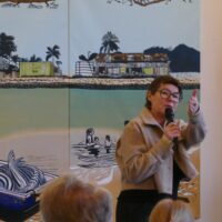 Die Ausstellung zeigt mehrfarbige Linoldrucke, die aus bis zu zwanzig einzelnen Druckstöcken Schicht für Schicht aufgebaut werden. Farbe, Struktur und zeichnerische Elemente schaffen narrative Räume, die Bewegung und Stillstand, Realität und Imagination verbinden.