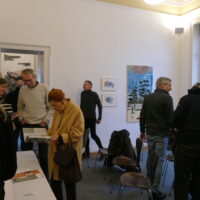 Nach der Eröffnung kamen die zahlreichen Gäste miteinander ins Gespräch und tauschten sich aus. Viele bekannte Künstler*innen aus Bremen tauchten zur Vernissage aus dem Schneegestöber von draußen auf und verweilten in angeregten Unterhaltungen in den Ausstellungsräumen.